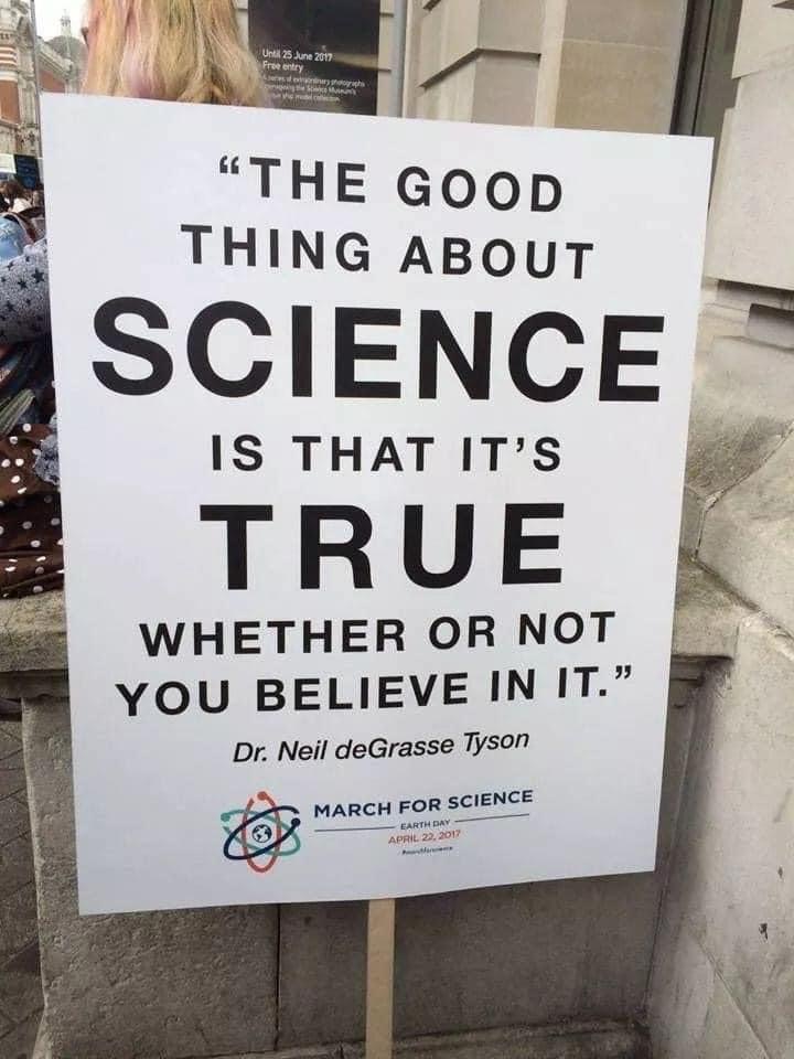 Answer: The claim made is not a scientific claim, it is philosophical. There is no scientific experiment that can be run to determine the truthfulness / validity of the statement “science is true whether or not you believe in it.” The statement also claims that this is “good” which is a moral term and brings into view another issue, but that will not be addressed here today. My comment on my friend’s post was this: